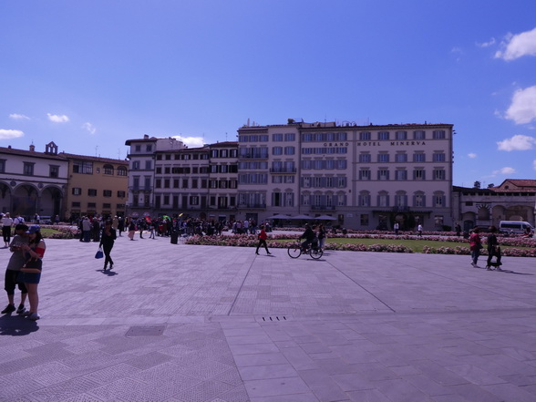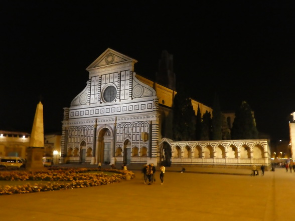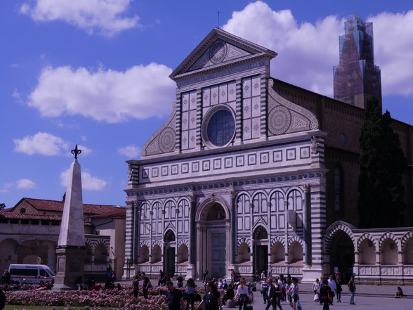 Florenz Piazza Santa Maria Novella Der rasenbewachsene Platz Piazza di Santa Maria Novella befindet sich am westlichen Rand der Altstadt. Die Nordseite des Gebietes wird von der eindrucksvollen Marmorfassade der gleichnamigen Kirche Santa Maria Novella geprägt. Nach einem Spaziergang auf dem Platz bietet sich ein Besuch der künstlerisch wertvollen Kirche an. Die Dominikaner-Mönche der Santa Maria Novella zogen mit ihren Predigten und Prozessionen im 13. Jahrhundert bis zu 40.000 Menschen an. Jedoch waren die Räumlichkeiten des Gotteshauses nicht für solch einen Besucheransturm ausgelegt und so ließ man zwischen den Jahren 1287 und 1325 mehrere Häusern direkt vor der Kirche abreißen, um ausreichend Platz für die Gläubigen zu schaffen. Die Piazza ist daher im Vergleich zu anderen mittelalterlichen Plätzen ungewöhnlich großräumig. Firenze   Im weiteren Verlauf der Geschichte erreichte die Piazza di Santa Maria Novella als florentinische Rennstrecke Berühmtheit. In der Zeit von 1593 bis 1858 fanden hier über 250 Jahre lang Pferdewagenrennen statt. Der Wettkampf "Palio dei Cocchi" wurde alljährlich am Johannistag ausgetragen. Dabei kämpften die ältesten vier Florentiner Stadtteile San Giovanni, Santa Maria Novella, Santa Croce 30 und San Frediano gegeneinander um Ruhm und Ehre.
