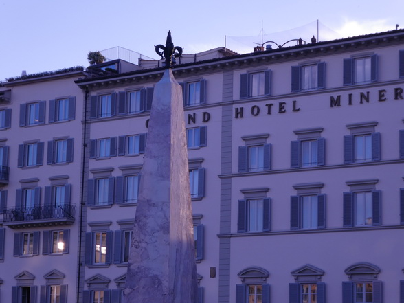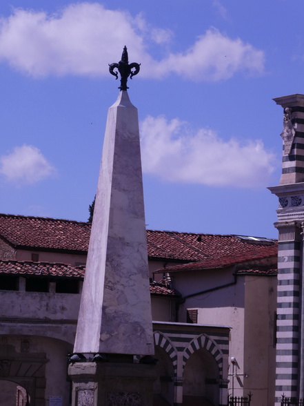 Die auch heute noch auf der Piazza vorhandenen marmornen Obelisken markieren die damaligen Wendemarken des Parcours. Großherzog Ferdinand I. stiftete sie im Jahr 1608. Beim genaueren Hinsehen entdecken die Besucher, dass die Obelisken von bronzenen Schildkröten getragen werden. Sie sollen ein Spätwerk des Bildhauers Giovanni Bologna sein.