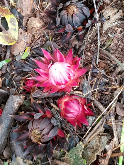 Diese bemerkenswerte Pflanze ist ein Wurzelparasit auf umliegende Pflanzen, indem sie ihre Knolle verwendet; ihre schuppigen Blätter haben kein Chlorophyll. Außerdem tauchen die Blumen aus dem Boden auf! So etwas hatte ich noch nie erlebt.
