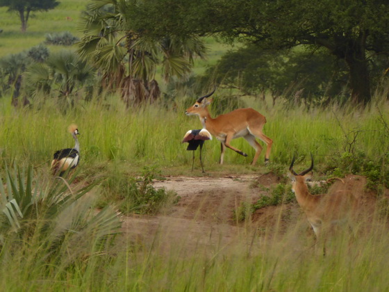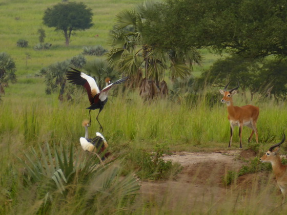 | Murchinson Falls National Park Crowne Crane attacking Uganda Kob | Murchinson Falls NP Gamedrive Crowne Crane attacking Uganda Kob |