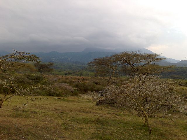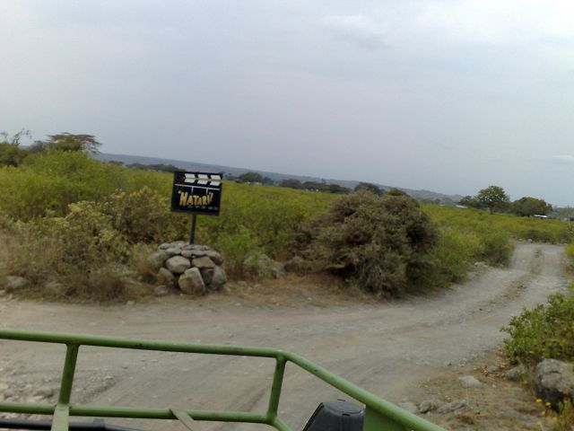 Abzweig zur Hatari Lodge   Hatari Signpost Blick auf Kili in Wolken  Kilimandscharo in Clouds