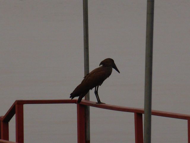 | Kiboko Bay Resort Lake Victoria Birds Ibis | Kiboko Bay Resort Lake Victoria Birds Hammerkopp on jetty |