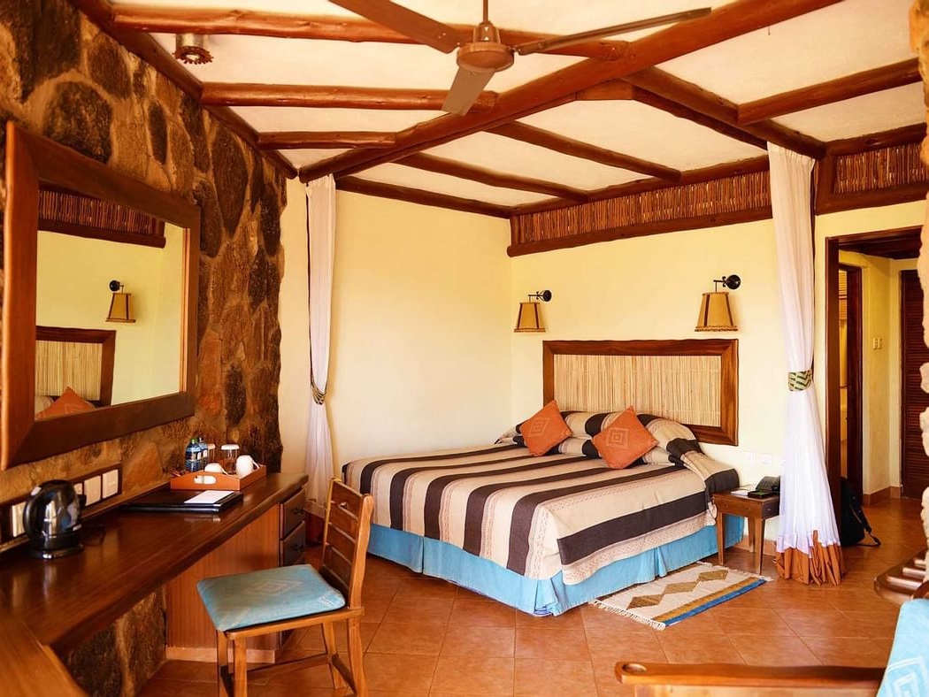 UNTERKUNFT KILAGUNI-SUITE Unsere prächtige Kilaguni-Suite befindet sich im Gebäude der Suiten und bietet einen atemberaubenden Blick auf das Wasserloch und die Chyulu-Hügel. |