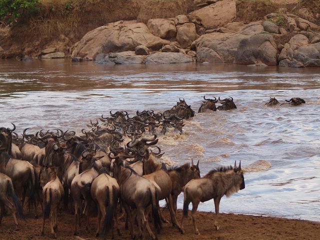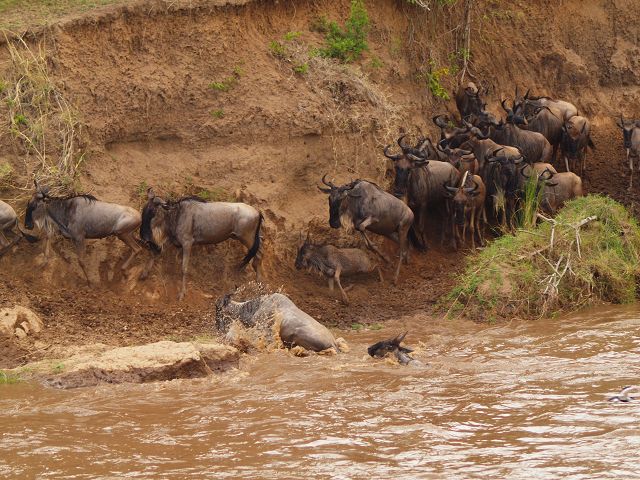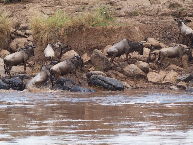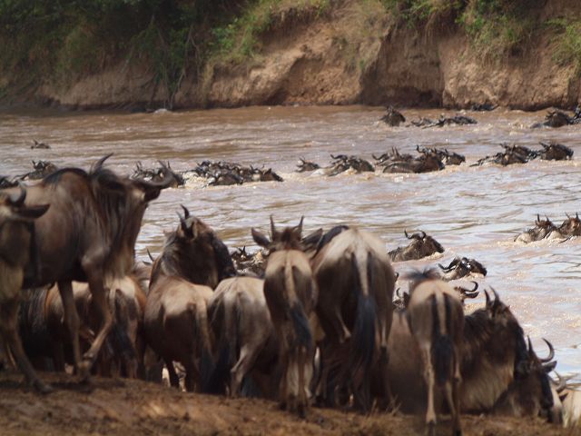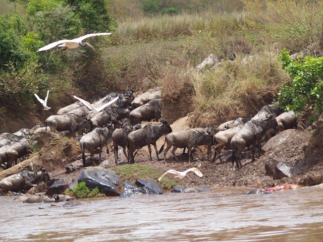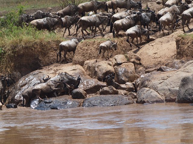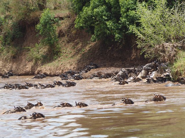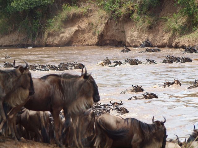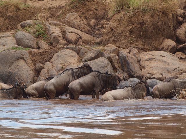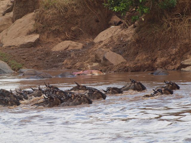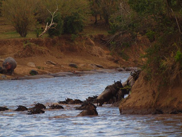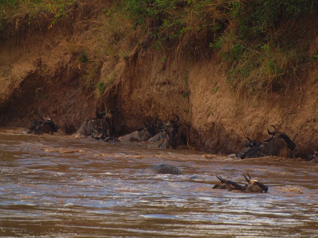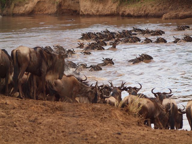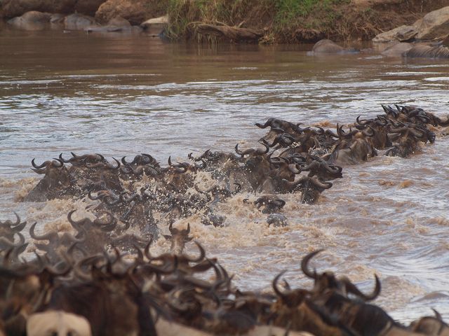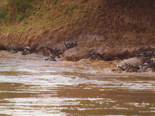 zurück Masia Mara 2010   zurück Äthiopien    Masai Mara Crossing Wildebeest Crossing
