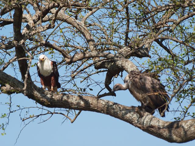 | African Fisheagle + Geier Weißrückengeier Gyps africanus | African Fisheagle + Geier Weißrückengeier Gyps africanus |