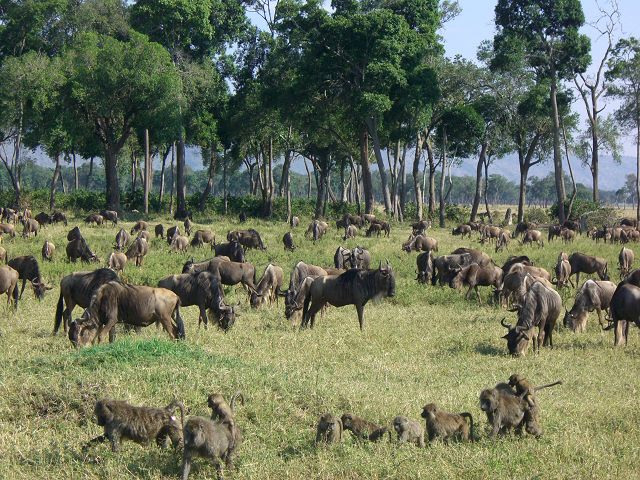 Gnu + Paviane Gnuherde Gnutrain Gnumigrantion Wildebeester on Tour