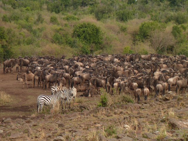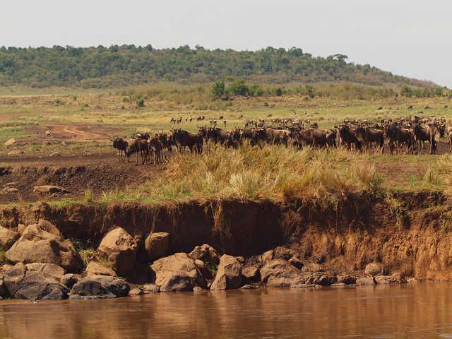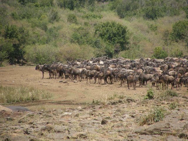 riesige Herde ca 1500 gnus Waiting for Crossing