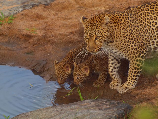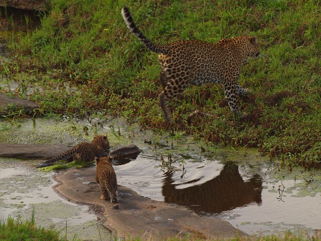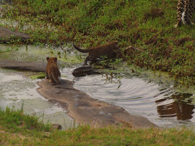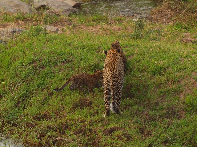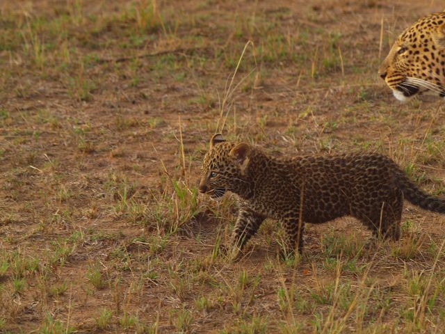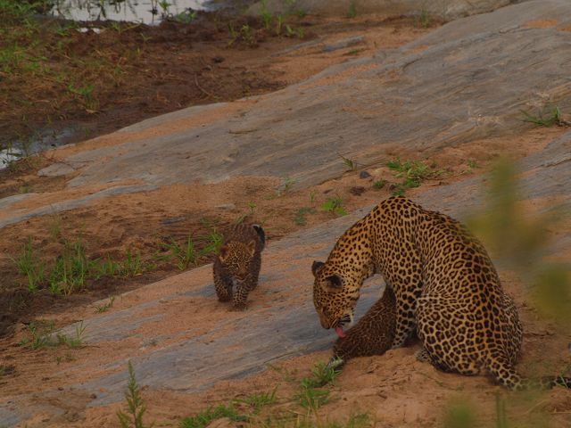 Sie holt die 2 Kleinen aus dem Versteck und geht zum dem Riß ( morgens 6:30 ) chuikidogo chui kidogo leopardenjunges
