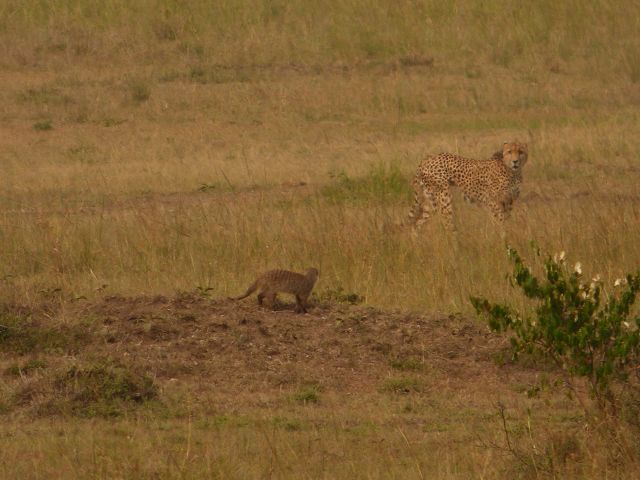 Mungo meets Cheetah Mongoose Snakeeater Masai Mara Kenya |