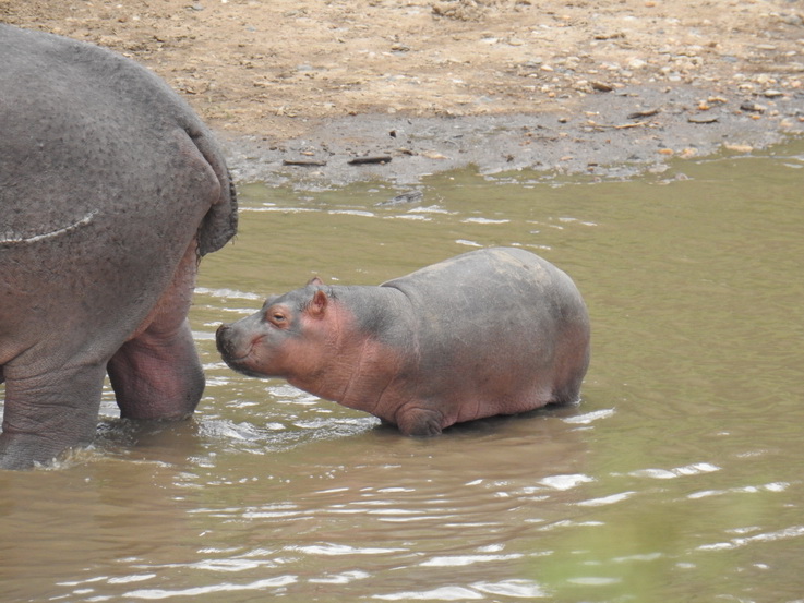 | Flusspferdjunges Mara Kiboko hat nur Spielen im Kopf | Masai Mara Hippopool Kiboko |