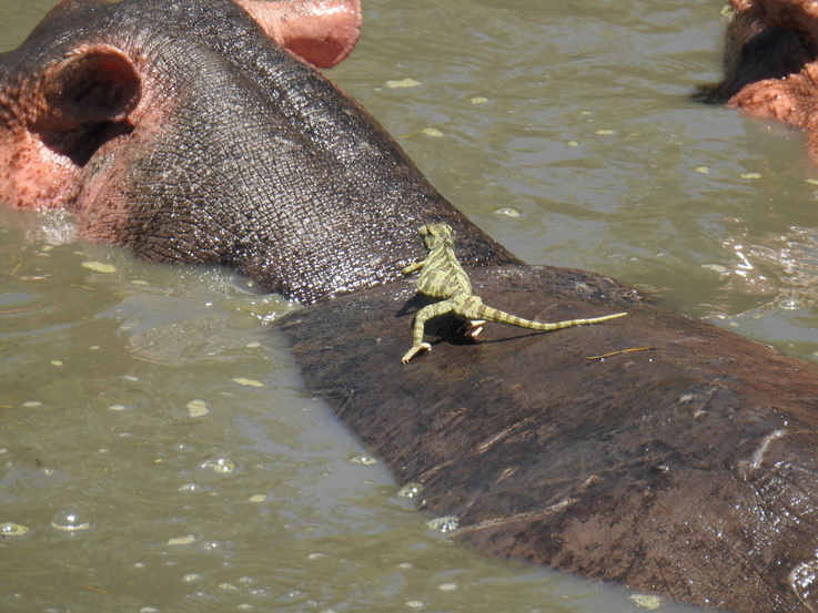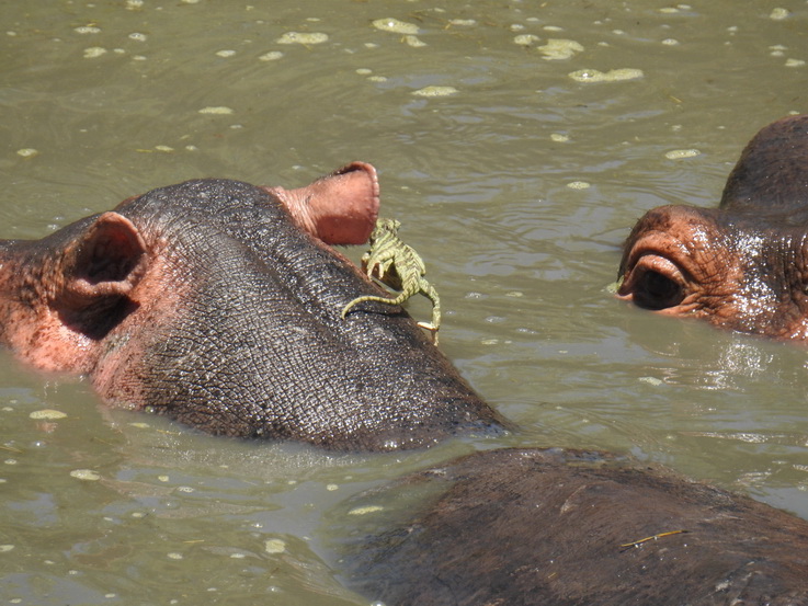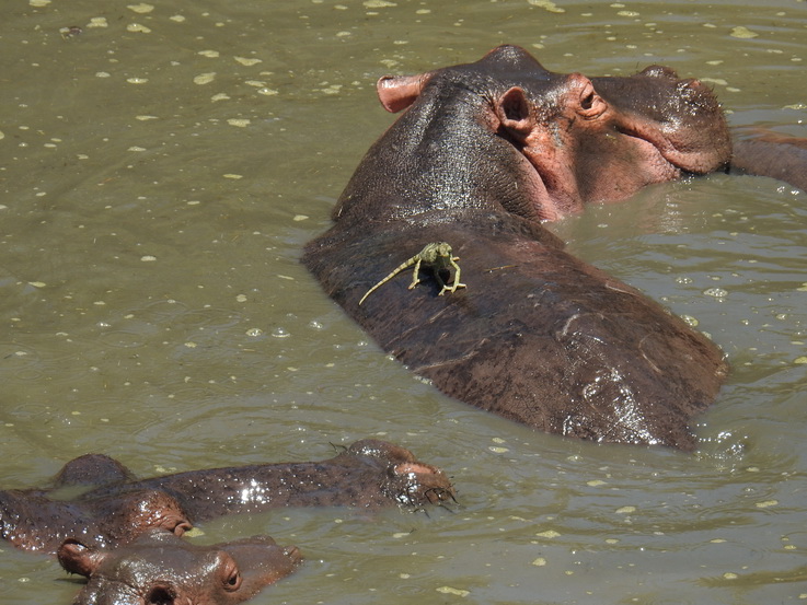 | Hippopool Flusspferde im Seitenarm des Talek River Kiboko | Masai Mara Hippopool Kiboko Talek Chamäleon auf Flusspferd |