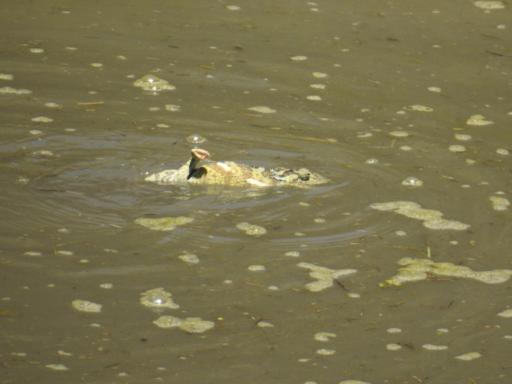 | Hippopool Flusspferde im Seitenarm des Mara River Chamäleon | Masai Mara Hippopool Kiboko Chamäleon schwimmt Beinchen in die Höhe |