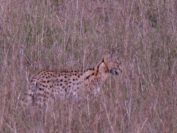 Der Serval hat von allen Katzen relativ gesehen die längsten Beine, was dazu beiträgt, für die Jagd im hohen Gras Höhe zu gewinnen. Er kann 6 km pro Nacht laufen, wenn die Beute knapp ist. Die Hauptfunktion der hohen, vertikal gesetzten Ohren besteht darin, als Schalltrichter zu fungieren, die eine genaue Ortung der Beute ermöglichen.