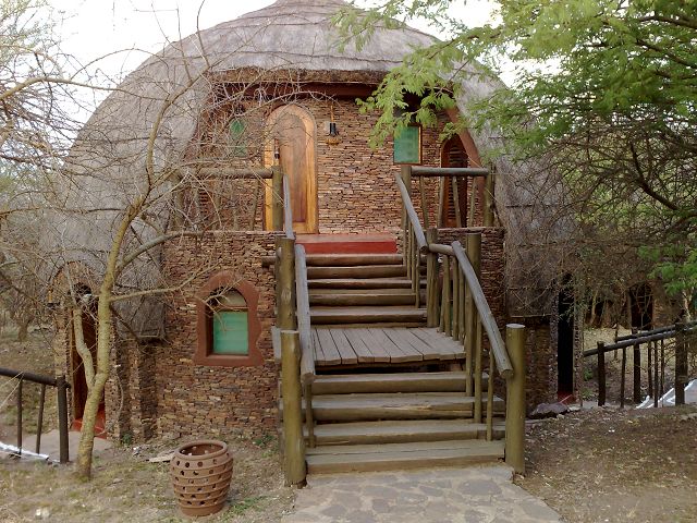 Serengeti Serena Lodge 2 stöckige Beehuts von der Eingangsseite Serengeti Serena Lodge Pool