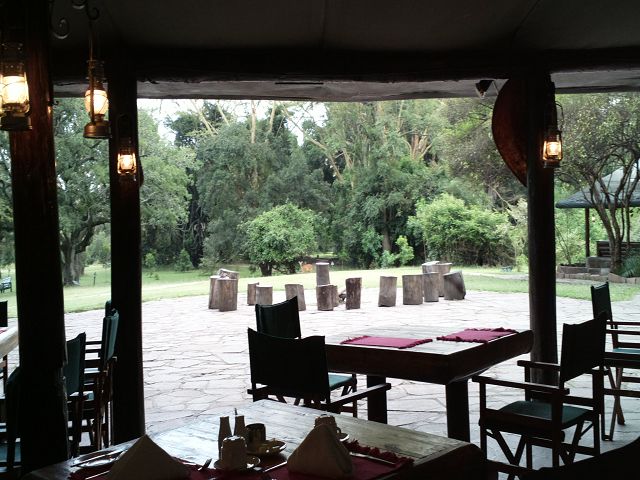 | Siana Springs Tented Camp Restaurant mit Boma Bushbock Baby | Siana Springs Tented Camp im Restaurant Bushbock Baby |