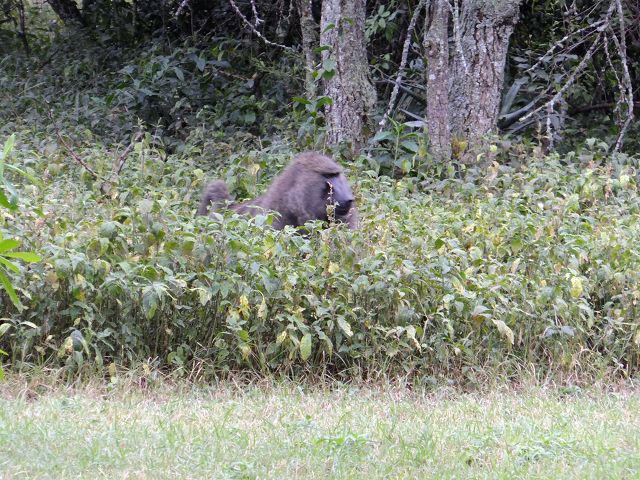 | Siana Springs Tented Camp Bärenpavian vorm Zelt 12 | Siana Springs Tented Camp vom Zelt Kumi na billi = 12 also B12a insgesamt 39 Zelte in 2012 |