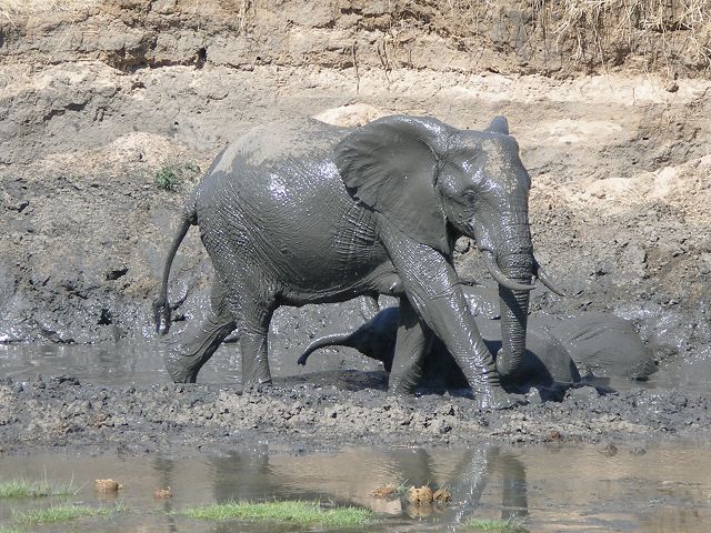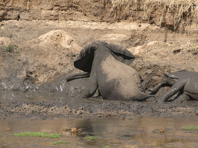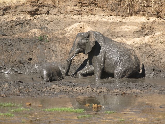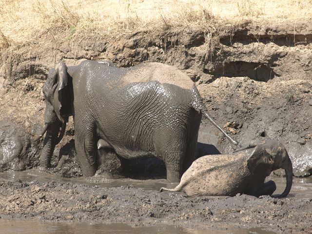 zurück    Tembos von Tarangiere Nationalpark  im Schlammbad               Migrationsafari 2009