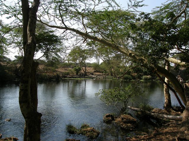 Mzima Springs.Mitten der trockenen und heißen Savanne liegt ein Waldgebiet, dessen Mittelpunkt zwei glasklare Quellteiche bilden. Gespeist werden diese Oasen durch unterirdische Flussläufe, die das Schmelzwasser des Kilimanjaro heranführen. In der  Minute sprudeln bis zu 280.000 Liter aus den Mzima Springs. Ein grosser Teil wird als Trinkwasser per Pipeline nach Mombasa geleitet .