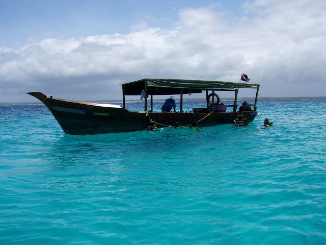 Die Taucher sind schon weg ab nach Menmba 1 1/4 Bootsstunde vom Hotel entfernt  die Privathotelinsel Mnemba ( nacht $ 600,--)