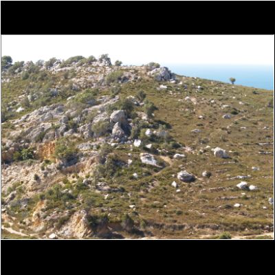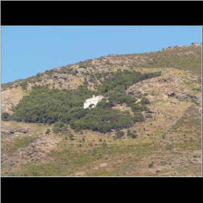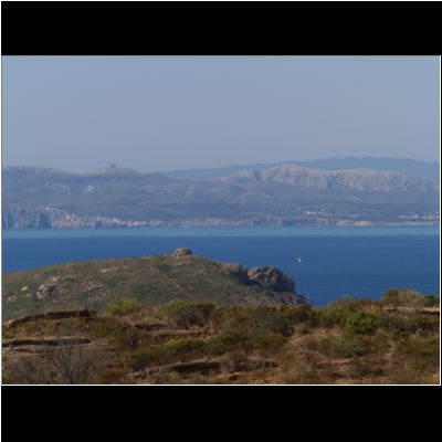| Blick rüber bis zum Cabo Creus | oben unter dem Berggipfel liegt das Kloster San | |