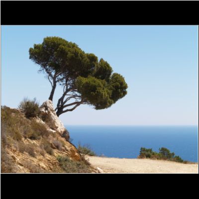 | Pinie auf dem Hinweg | Diesselbe Pinie auf dem Rückweg | Blick wieder auf Cadaques |