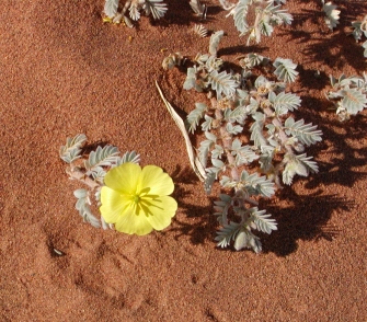 Namibia Sossusvlei Dead Vlei Sesriem Canon Sossusvlei in der Namib Wüste Gelb blühende Blumen im Sossusvlei, Namibwüste Namib Naukluft Nationalpark, Namibia