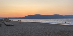 Sandstrand. Am Strand sind Liegen und Sonnenschirme kostenfrei erhältlich.