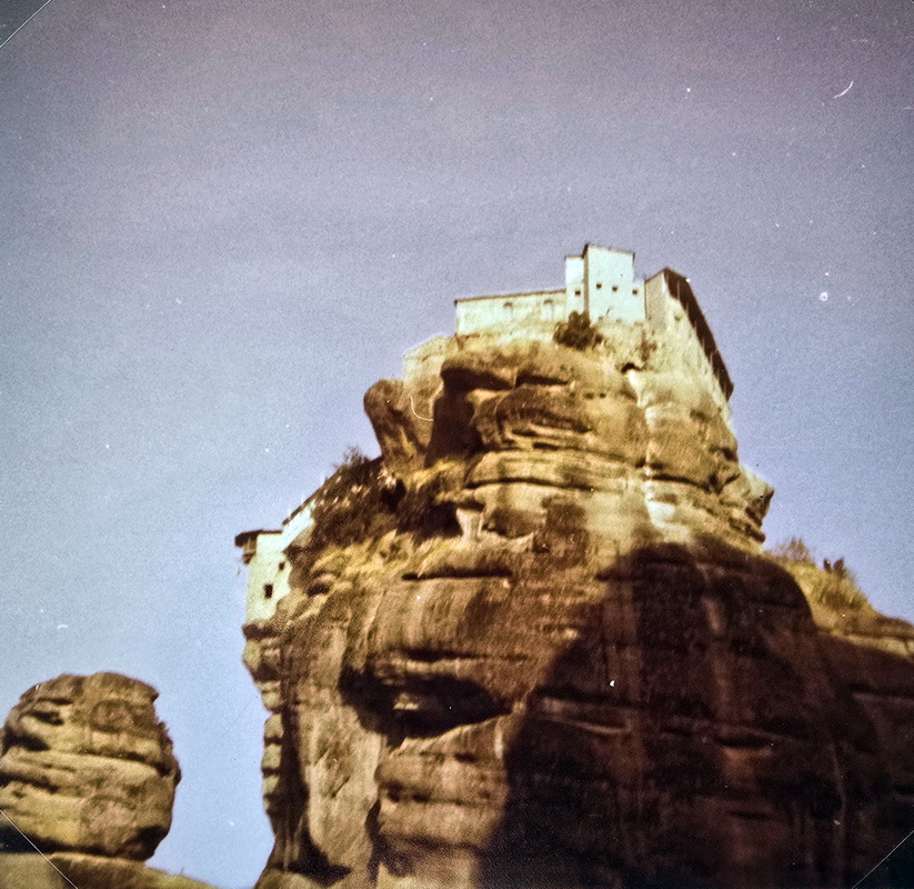 | Meteora Klöste wei Schwalbennetser kleben die an und auf dem Fels | Kastraki Campingplatz | ||