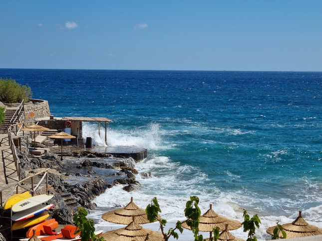 | Minos Palace hotel & suites Unsere Liegeplatz wurde höher geleht Hohe wellen | Minos Palace hotel & suites heute wellen sehr hoch |