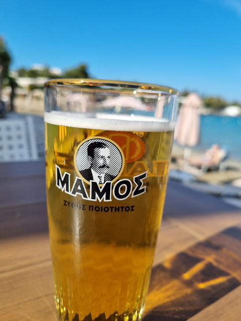 Agios Nikolaos Achinos Restaurant + Strand + Liegen Minibeach in de Stadt |
