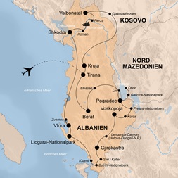 | Albanien bietet alles, was das Traveller-Herz begehrt: großartige und abwechslungsreiche Landschaften, gastfreundliche Menschen, herausragende kulturelle Schätze und die Prise Abenteuer und Exotik, die es im „entdeckten“ Europa kaum mehr gibt. Los geht’s mit der pulsierenden Hauptstadt Tirana, gefolgt von der mittelalterlichen Museumsstadt Berat. Ein Abstecher bringt uns ins benachbarte Nordmazedonien, wo wir im Galičica-Nationalpark wandern und den tiefblauen Ohridsee entdecken. In Südalbanien erwarten uns neben traumhaften Berglandschaften und beeindruckenden Schluchten auch warme Quellen zum Entspannen, die antike Ruinenstadt Butrint und historische Orte wie Korça und Gjirokastra. Unser Aufenthalt an der Küste bietet genügend Zeit, um im Llogara-Nationalpark tolle Ausblicke aufs Meer zu erhaschen und an einem der Strände zu relaxen. Die Highlights des Nordens sind definitiv das Städtchen Shkodra mit seiner Rozafa-Burg, die eindrucksvolle Fährfahrt auf dem fjordartigen Komansee und unsere Wanderung in den Albanischen Alpen – besondere Erlebnisse, die uns nachhaltig in Erinnerung bleiben! |