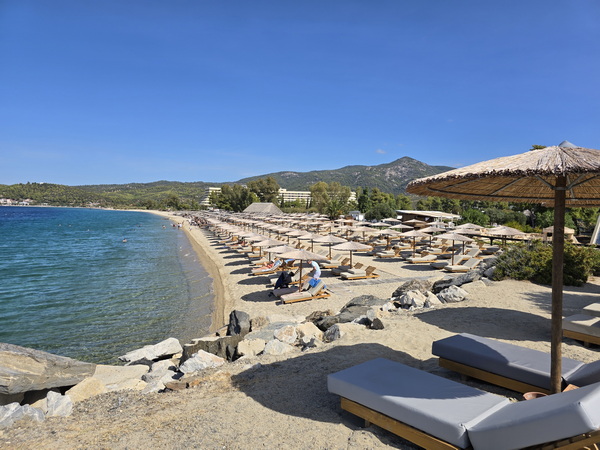 | Hotel Porto Carras Meliton Superr wassertropfeneffekt | Hotel Porto Carras Häuser oberhalb der Strasse |