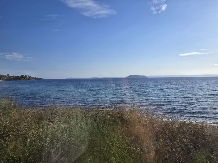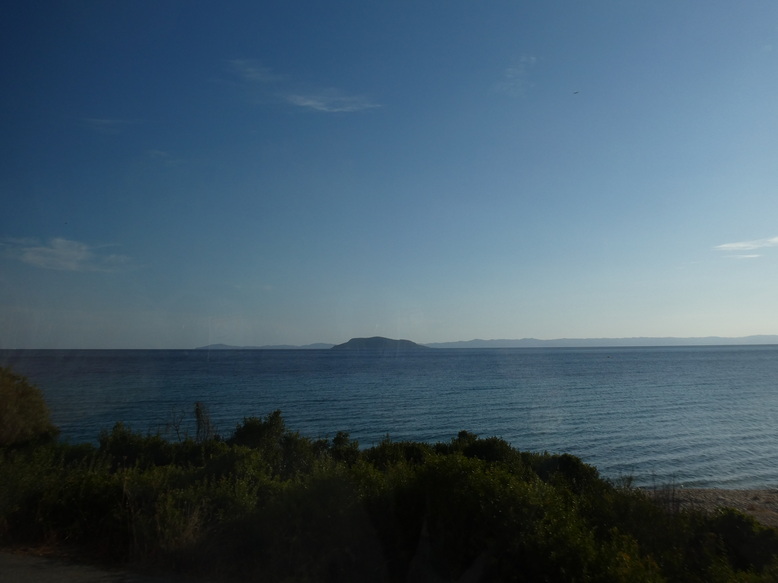 Saloniki Bus to Carras Transfer Blick auf Insel und Neos Marmaras Saloniki Bus to Hotel Porto Carras Meliton Transfer