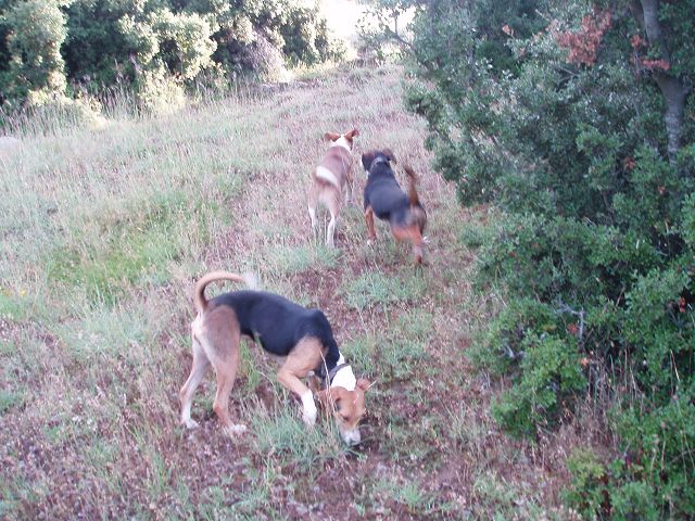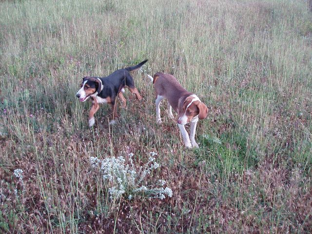 | Griechische Bracken bei der Jagd | Griechische Bracke bei der Jagd |