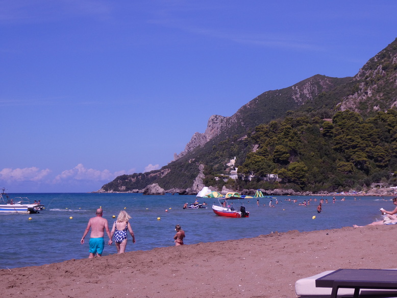 Strandleben Glyfada Beachcruiser Strand von  Marriott Hotel domes of corfu Glyfada Beach  Cruiseship