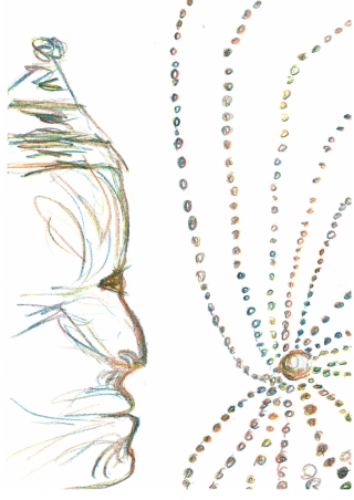 Fünfter Budda schaut auf Lotusblüte Sechster Budda sieht auf das Strandbild der Krabben im Sand