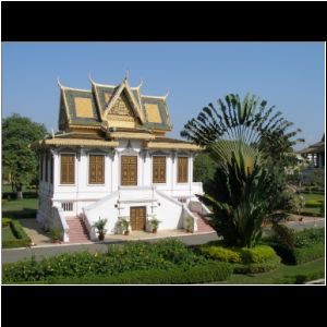 KÖNIGSPALAST UND SILBERNE PAGODE: der Königspalast wurde auf dem Grund der ehemaligen Zitadelle Bantey Kev (sie stammt aus dem Jahr 1813) erbaut. Einige Bereiche des weitläufigen Königspalastes sind nicht zugänglich, da der Palast zugleich die offizielle Residenz von König Norodom Sihamoni ist. Die Silberpagode wird oft auch als Tempel des Smaragdbuddhas oder Wat Preah Kaeo bezeichnet. Der hölzerne Tempel wurde 1892 von König Norodom erbaut. Der gesamte Boden im Inneren der Pagode ist mit mehr als 5000 silbernen Platten ausgelegt, die zusammen etwa 61 wiegen.