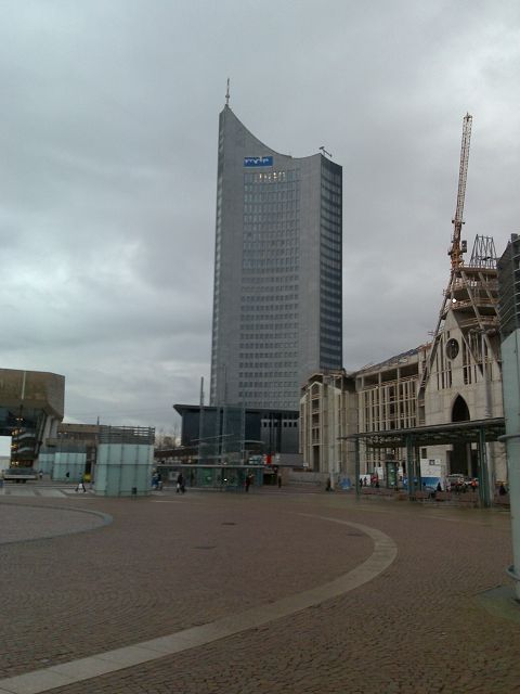 MDR Turm und neue Uni mit Paulinerkirche die 1968 von SEd abgerissen wurde