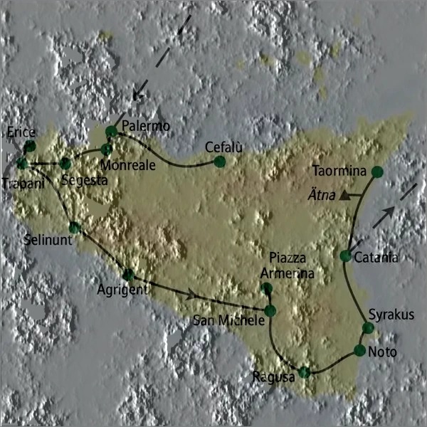 Stationen dieser Studiosus-Reise nach Sizilien: Palermo, Monreale,
