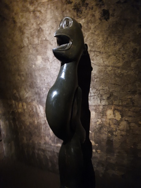 Shona-Skulpturen Specksteinfiguren von Künstlern aus Zimbabwe Aliança Underground Museum Shona = Kore Kore, Zezuru, Katanga, Manyika, Ndau und Rozvi Das Aliança Underground Museum befindet sich in Sangalhos (Gemeinde Anadia), im Distrikt Aveiro, Portugal. : Rua do Comércio 444, 3781-908 Sangalhos. Es ist das erste Untergrund-Museum Portugals, das in den historischen Weinkellern der Marke Aliança Vinhos de Portugal eingerichtet wurde. Kombination von Wein-/Sektkellern und Kunst / Kultur: Das Museum integriert die Weinherstellung (Reifung von Weinen, Sekten, Branntweinen) mit künstlerischen und naturwissenschaftlichen Sammlungen. Acht bzw. neun permanente Sammlungen, darunter Archäologie, Ethnografie (z. B. afrikanisch), Mineralogie, Paläontologie, Azulejos (portugiesische Fliesen), Keramik der Region Caldas da Rainha und indische Kunst. Geführte Touren unter Tage: Die Besichtigungen finden in den Kellerräumen statt, was eine besondere Atmosphäre schafft – konstant kühl, eindrucksvoll beleuchtet etc |