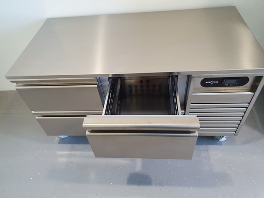 | Mercatus Agueda Showroom Cooling Experts Kühltisch 2 Züge 3 x 1/3 Züge 1 Türe und eine ungekühlte Schublade über dem Aggregat | Mercatus Agueda Showroom Cooling Experts Kühltisch 2 Türen und eine ungekühlte Schublade über dem Aggregat |