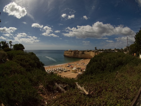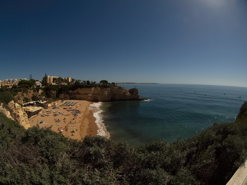 Bis Faro schauen Praia Rocha mit der Kapelle auf der Klippe