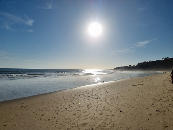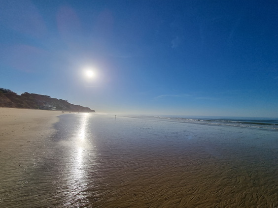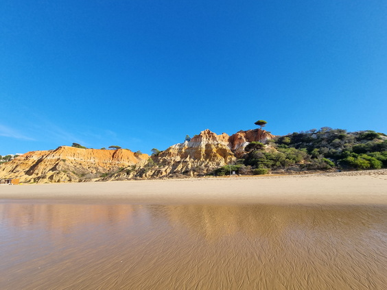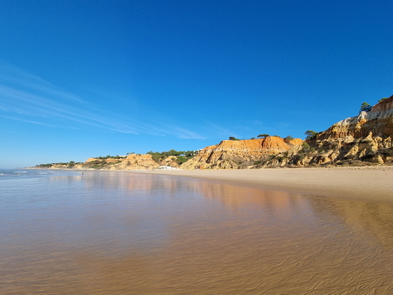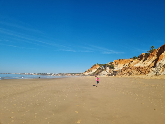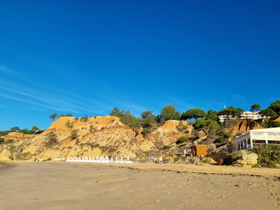 Falesia Puresand Beach am Ende geht in den Flachenteil nach Villamoura Beachclub und Riesen Yachthafen