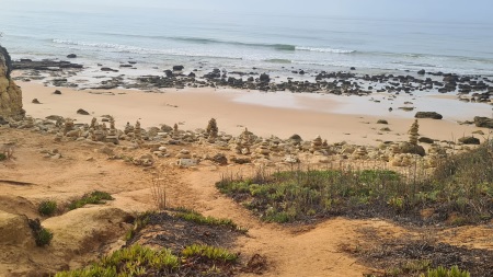 Steinmännchen am Strand Wanderwege mit immer hoch und runter besser mit Stöcken wegen Geröll