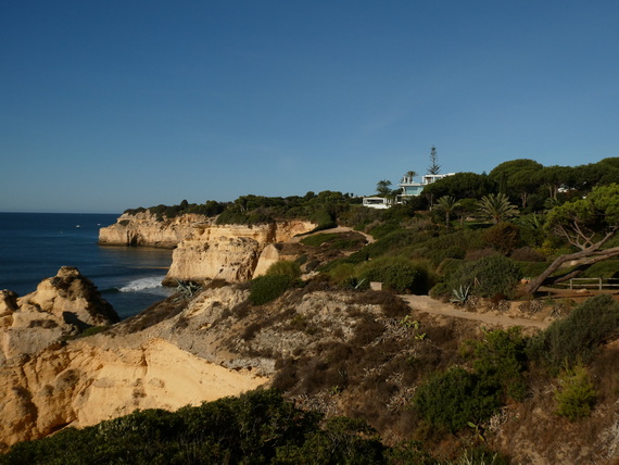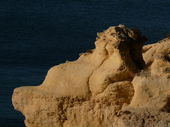 | die Felsklippen der Algarve liegender Budda mit Nackenstütze Weingott Bacchus in der Algarve oder liegender Budda | die Felsklippen der Algarve Porches Küstenweg |