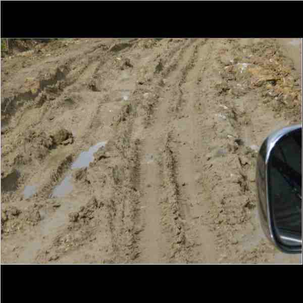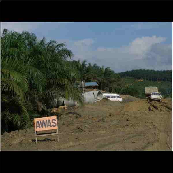 | Ein Teilstück der Ölplantagenstrasse ist gerade im Bau und dementsprechend | auf namibiansch " lekkere pad " |