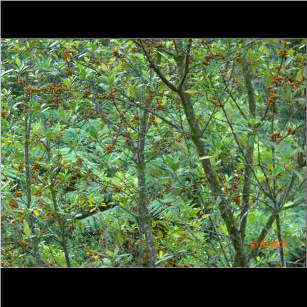 | Petrolbaum Brennendes Gas aus der Frucht Petrolbaum | Bei der Petrolbaumfrucht kann man das aus der Frucht austretende Gas anzünden |