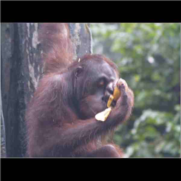 | Baumriesen | Wilder Orang bei den Gomantong Höhlen |