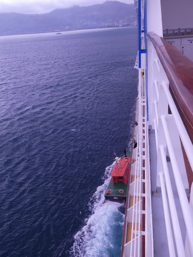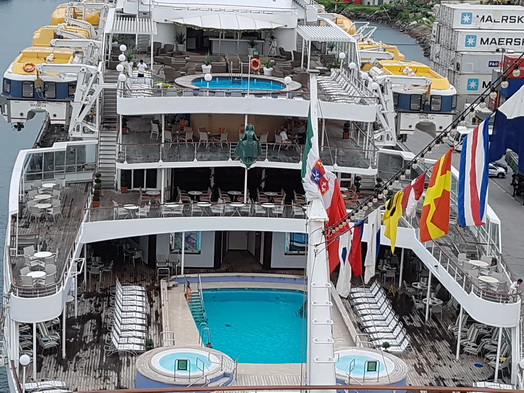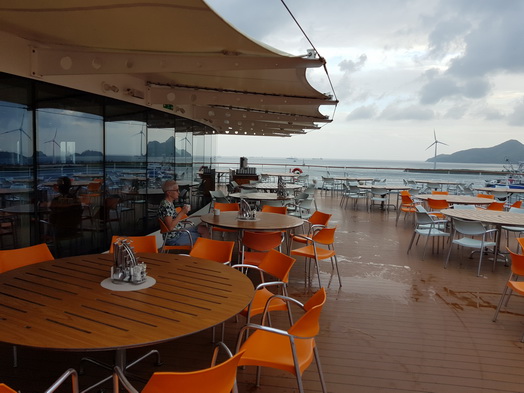 | Mahe Seychellen Frühstück im Regen | Boudiccia Nassau 1973 als Royal Viking Sky gebaut jetzt Fred. Olsen Cruise Lines |