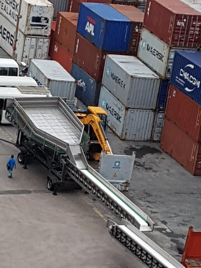 | Mahe Seychellen Monkey & Fox Island Housekeeping Work | Mahe Seychelles Thunfischrutsche für Beladung in die Container |